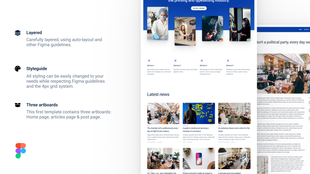 3 artboards (Home, articles, post page)